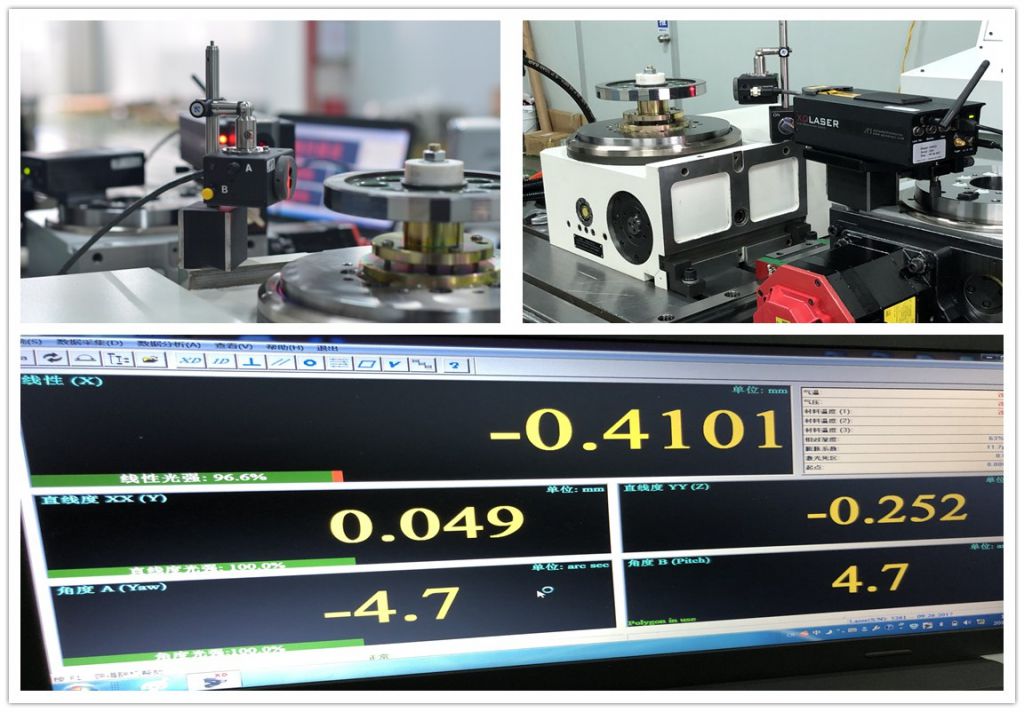 成品質(zhì)量控制(OQC):我們對(duì)成品轉(zhuǎn)臺(tái)實(shí)行全檢,符合國標(biāo)GB/T 17421.2-2016/ISO230-2:2006 機(jī)床檢驗(yàn)通則(數(shù)控軸線的定位精度和重復(fù)定位精度的確定), 采用最先進(jìn)的CNC機(jī)床模擬測試儀,可測試各種操作系統(tǒng)(包括發(fā)那科、西門子、三菱、海德漢、發(fā)格、兄弟等, 也包括華大、華中、廣數(shù)等國產(chǎn)系統(tǒng))下沃迪士轉(zhuǎn)臺(tái)的工作狀態(tài)。轉(zhuǎn)臺(tái)精度測試均采用鐳射等精密儀器。